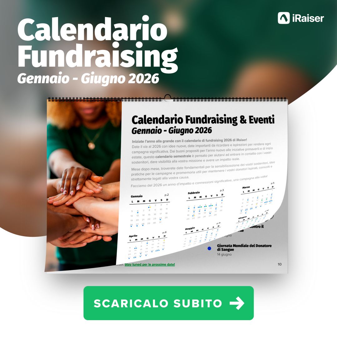 Inizia l’anno al meglio con il nostro Calendario di Fundraising, pensato per aiutarti ad organizzare campagne efficaci durante tutto il primo semestre dell'anno. Cosa troverai nel calendario? Idee per le tue campagne; Date importanti e giornate internazionali; Consigli pratici per le iniziative primaveriliofferto da